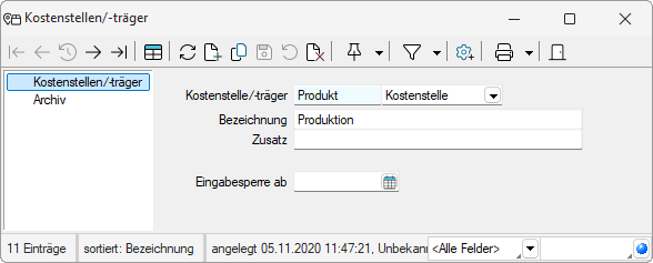 Eingabesperre ab - Jede Kostenstelle bzw. jeder
