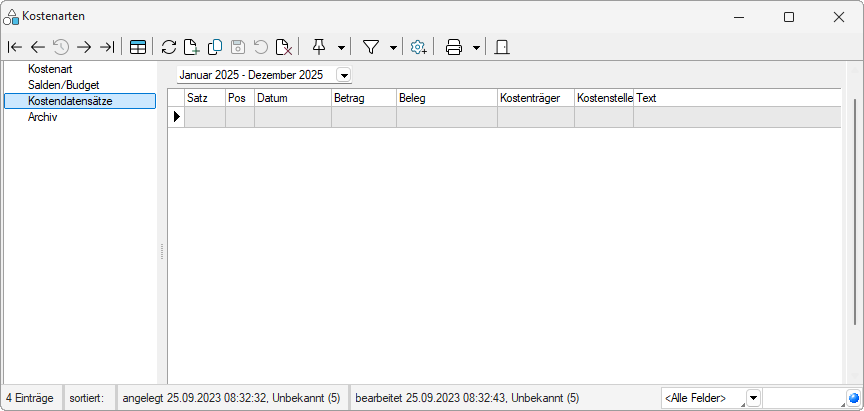 Hinweis: Über einen Doppelklick auf einen Datensatz gelangen Sie automatisch in die Erfassungsmaske des Kostendatensatzes und können ggf. Anpassungen durchführen.