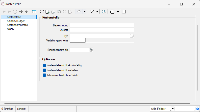 Eingabesperre - Für abgeschlossene Kostenstellen- bzw. Kostenträgerstammsätze kann ein Sperrdatum vergeben werden. D.h. ab dem hinterlegtem Datum können dieser Kostenstelle bzw. diesem Kostenträger keine Kosten mehr zugewiesen werden.