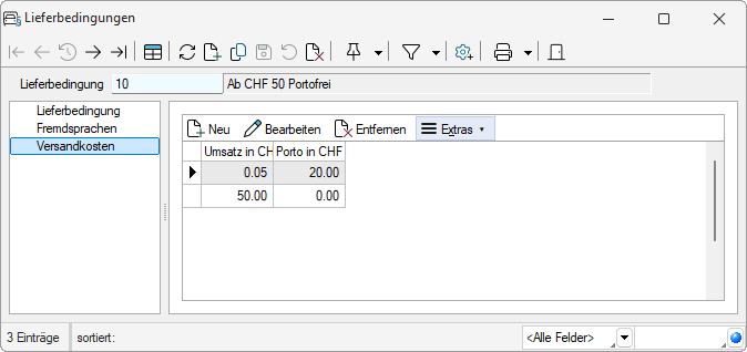 Im Dialog Stammdaten / Konstanten / Lieferbedingungen