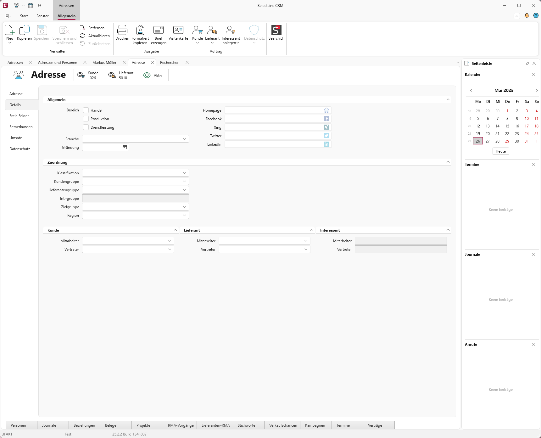 Detailmasken von Journalen, Adressen, Personen und Kampagnen erscheinen nur noch in einem Tab pro Typ.