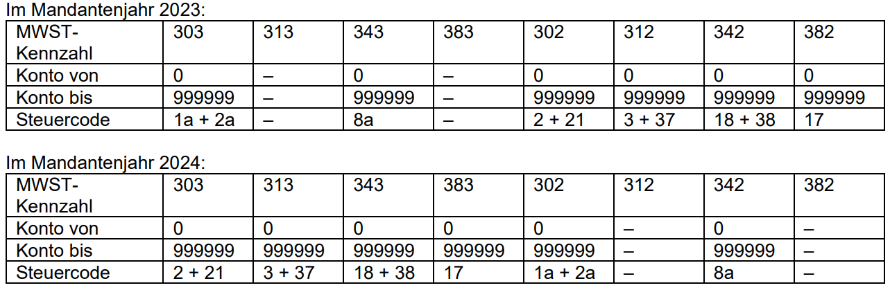 Per 01.01.2024 werden die Mehrwertsteuersätze wie folgt angepasst.