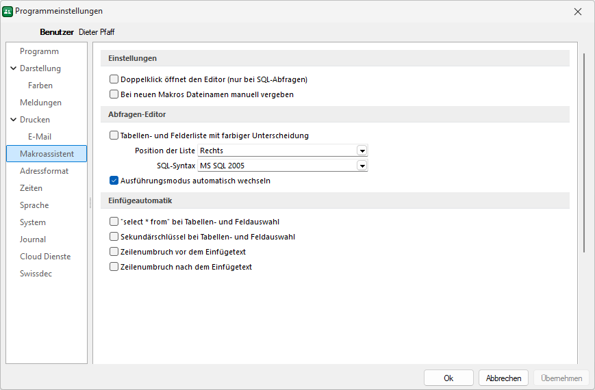 Abbildung 2.110: Programmeinstellungen Swissdec