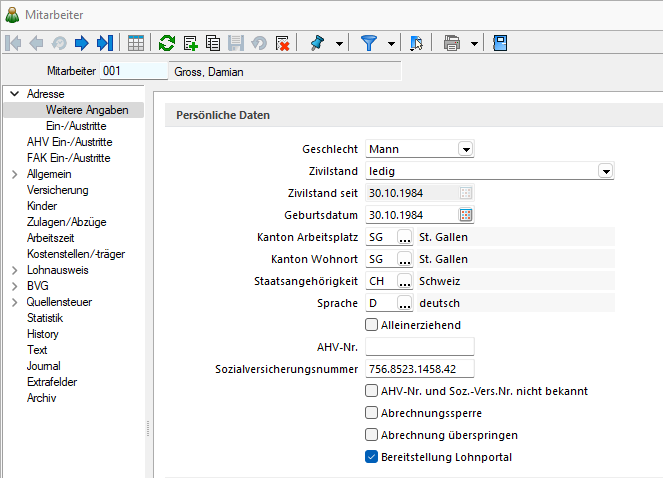 - Checkbox Bereitstellung Lohnportal unter Adresse / Persönliche Daten muss aktiviert sein