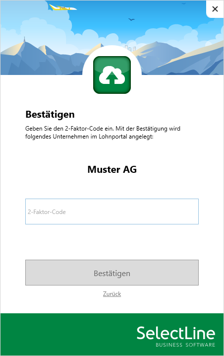 Die Registrierung für das Lohnportal findet direkt im SelectLine Lohn statt. Klicken Sie dafür auf den Menüpunkt Schnittstellen / Registrierung. Es öffnet sich ein Anmeldefenster, bei welchem Sie E-Mail, Passwort und die 2-Faktor-Authentifizierung (z.B. Google Authenticator) für den Account des Lohnverantwortlichen festlegen.