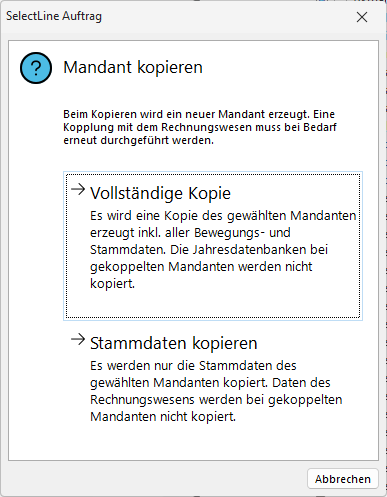 Mandant neu / kopieren (nur Stammdaten)