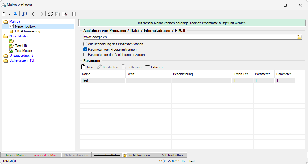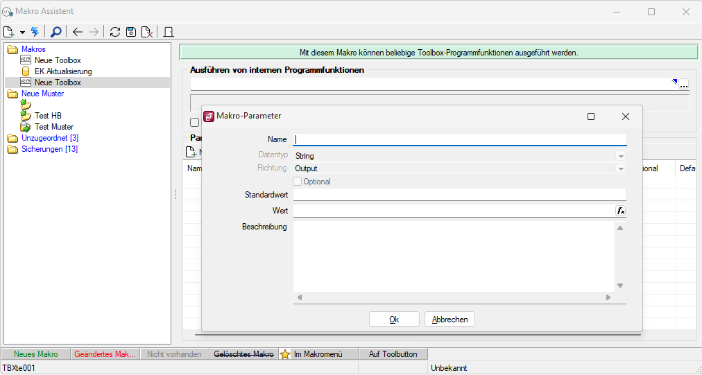 unter Eigene Daten / Makro-Assistent - Toolbox - (nur, wenn Toolbox lizenziert und für den Benutzer aktiviert ist)