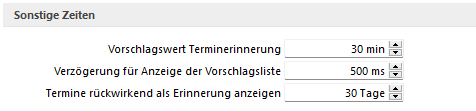 Hinweis: In den Programmeinstellungen kann auf der Seite Zeiten hinterlegt werden, wie lange offene Termin in der Erinnerungsliste angezeigt werden sollen (Standard sind 30 Tage).