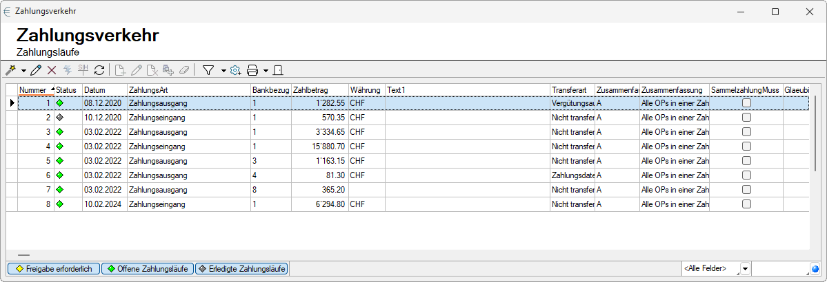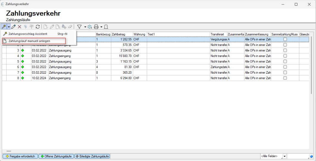 Bearbeiten oder Doppelklick öffnet den markierten Zahlungslauf. |