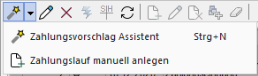 rechts des Zauberstabs gelangen Sie in ein weiteres Menü aus dem Zahlungslauf manuell anlegen angewählt werden kann.