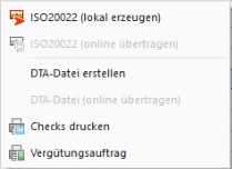 werden die Transferdaten erstellt, in Form von maschinenlesbaren Überweisungsträgern, je nach Definition in den Bankkonten werden die Transferarten angezeigt oder ausgegraut: