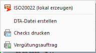 zusätzlich die Online-Übertragungsmöglichkeit angeboten wird. Diese kann je nach Finanzinstitut und Vertrag verschieden sein. Sollte ein Finanzinstitut Überweisungen nach ISO 20022 akzeptieren, würde auch der Menüpunkt SEPA-Überweisung (online übertragen) anwählbar sein. Je nach Art des Finanzinstitutes und der Files, ändert sich natürlich auch hier die Möglichkeit zu LSV+, EZAG oder DD.