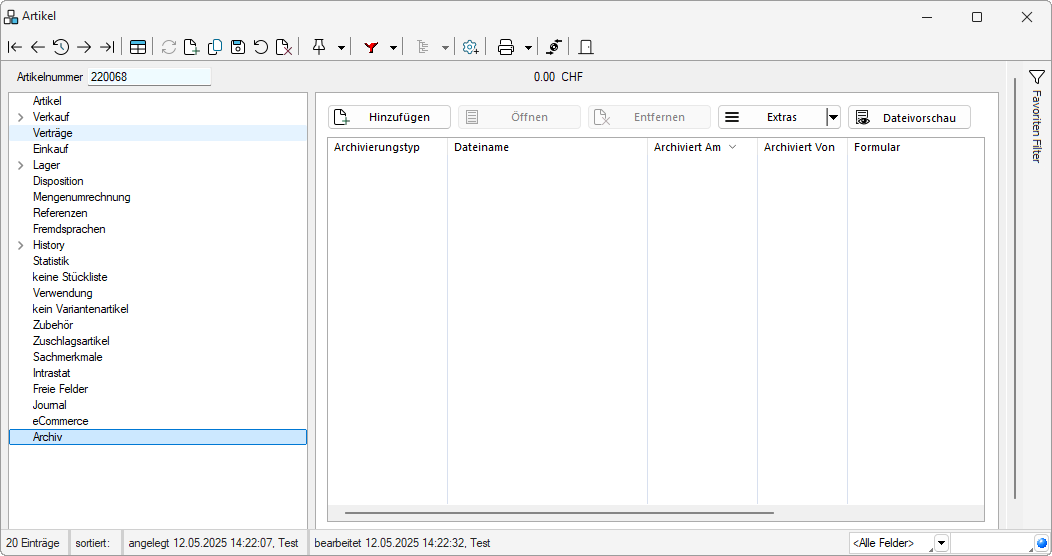 - Hier können Sie neue Archive hinzufügen, entfernen, direkt und Indirekt verknüpfen.
