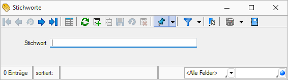 Erfassen Sie unter Stammdaten / CRM / Stichworte aussagekräftige Begriffe, die Sie für die Stichwortsuche oder Recherche in den CRM-Adressen nutzen möchten.