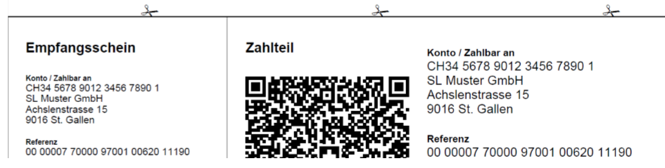 Achten Sie darauf, dass der Zahlteil mit dem Empfangsschein zum Abreissen perforiert ist, sollte die QR-Rechnung auf Papier zugestellt werden.