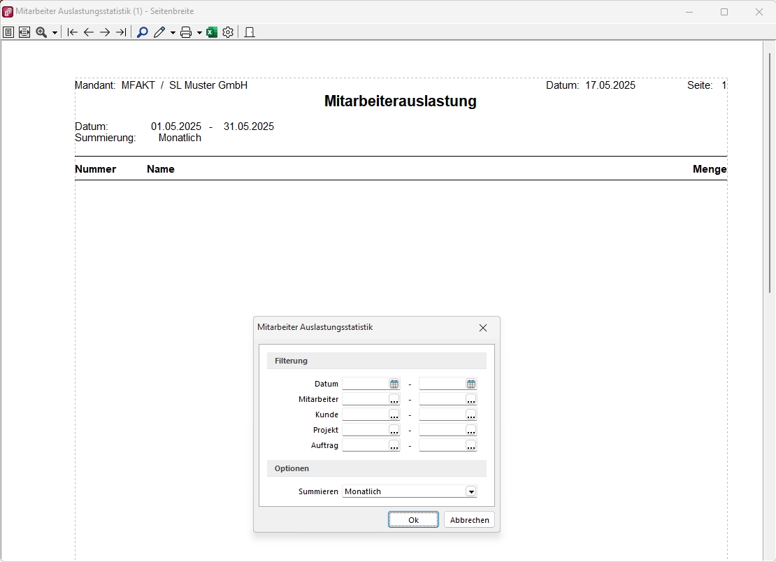 Erfolgt keine Auswahl, wird die Auswertung über alle Mitarbeiterleistungen