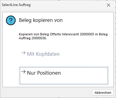 Bei der Funktion Beleg kopieren von ... aus dem Zusatzmenü