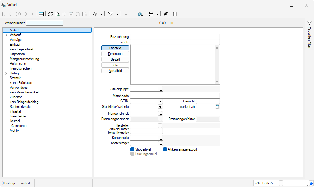 Im Feld Artikel können Sie nur speziell gekennzeichnete Leistungsartikel verwenden. Bezeichnung, Zusatz und Langtext werden nach Auswahl vom Artikel übernommen, können aber geändert werden.