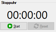 Stoppuhr - Zur Ermittlung der Leistungszeiten können Sie die Stoppuhr nutzen. Einmal gestoppte Zeiten können entweder mit Weiter fortgesetzt oder über Reset zurückgesetzt werden.