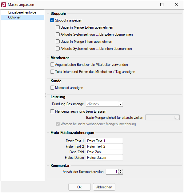 ) können Sie die Maske zur Leistungserfassung anpassen.